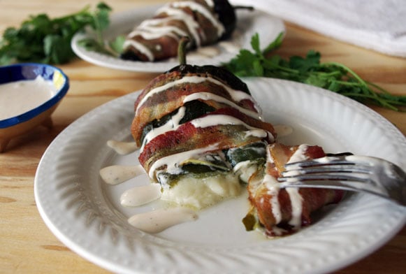 Bacon Wrapped Poblanos with Cilantro Ranch Dressing