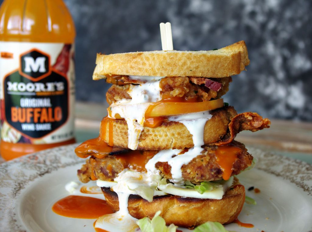 This Buffalo Chicken BLT is a phenomenal sandwich inspired by the traditional bacon, lettuce and tomato. Just adding a few things changed it from an everyday, tried and true sandwich to an unbelievable behemoth of a stacker for buffalo chicken (and bacon) lovers. There is not one bite of this that is not truly delicious.