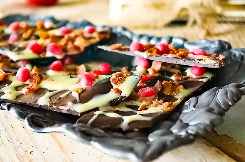 What Is Dark Chocolate Bacon Bark with Salted Caramel & Pomegranate?