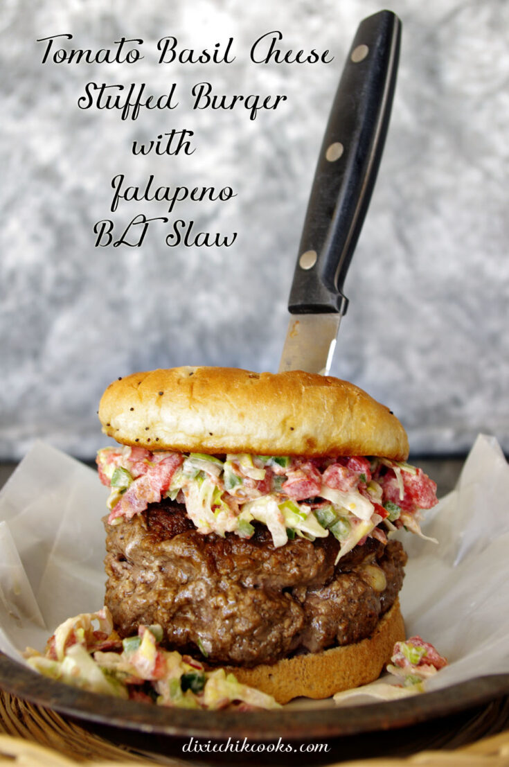 Cheese Stuffed Burger with Jalapeno BLT Slaw