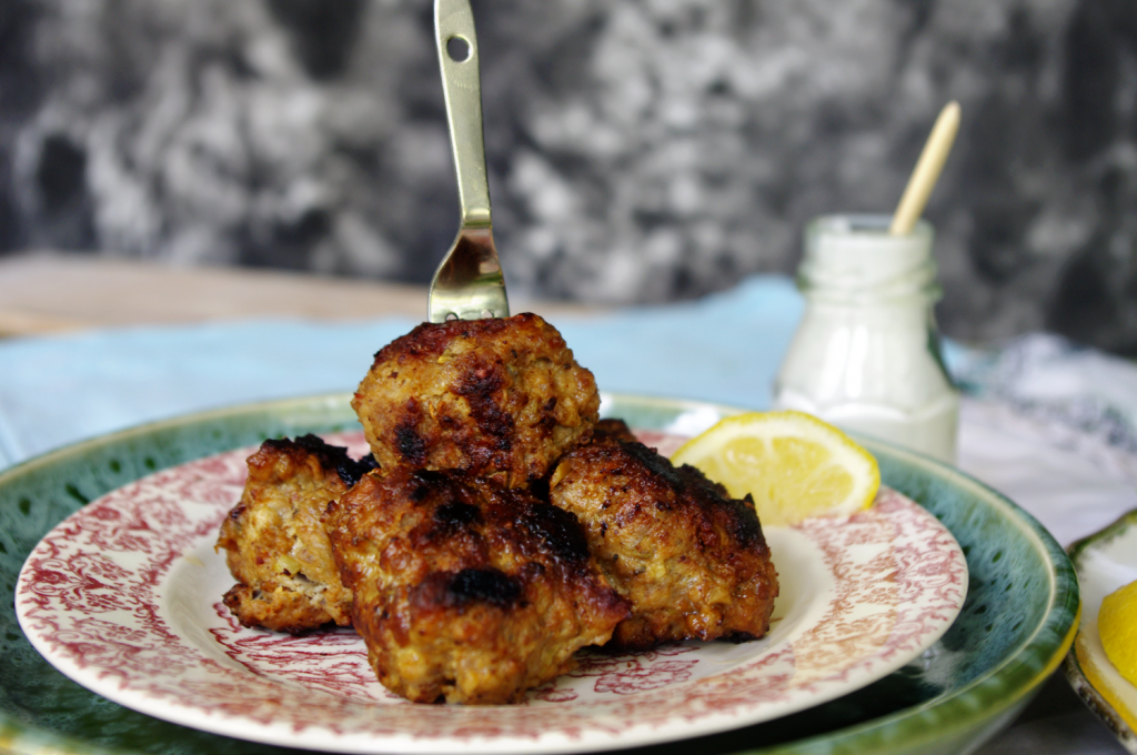 Familiar with Kafta? It’s a fairly simple Middle Eastern dish that can go in a gyro (wrap), kebobed over rice or a salad. I did not want to kabob these; I wanted to take the sticks out of the equation so I could play with them more than working around skewers. Don’t get me wrong – I do love kebobs.