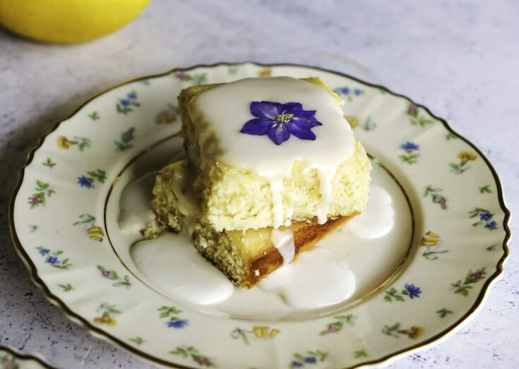 Instead, you get a shiny, almost fudgy-ish top (thanks to eggs and the perfect mix of fat and flour), a chewy interior that clings to your fork (or fingers) in the best way, and a sharp citrus zing that says, I’m not here to play.