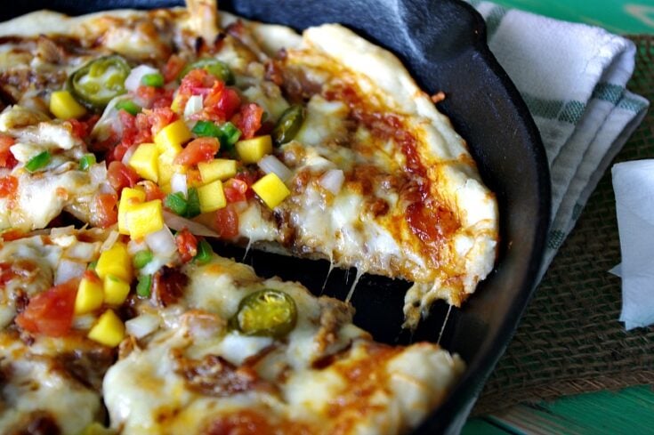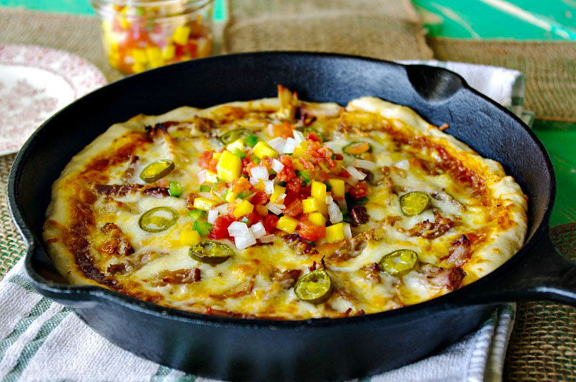 Pulled pork pizza is already a very good idea. But when you add spicy jalapeños and a bright, juicy mango salsa? Now we’re talking about sweet heat perfection.