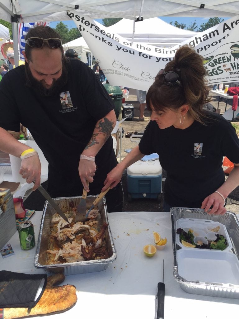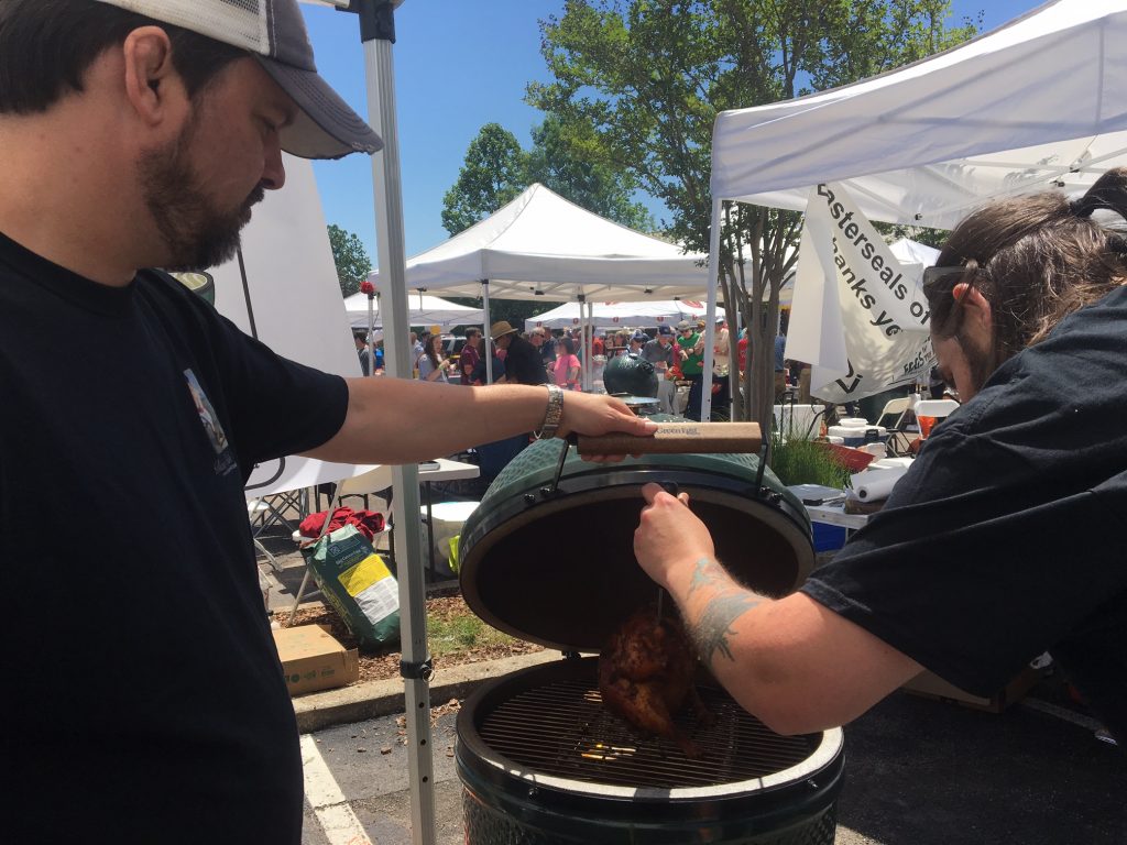 The competition was called Big Green Eggs in the ‘Ham, a 5th year charity fundraiser for Easter Seals of Birmingham. It was a fun event featuring food, beer, and live music. They also had kids’ activities including bouncy houses and face painting.